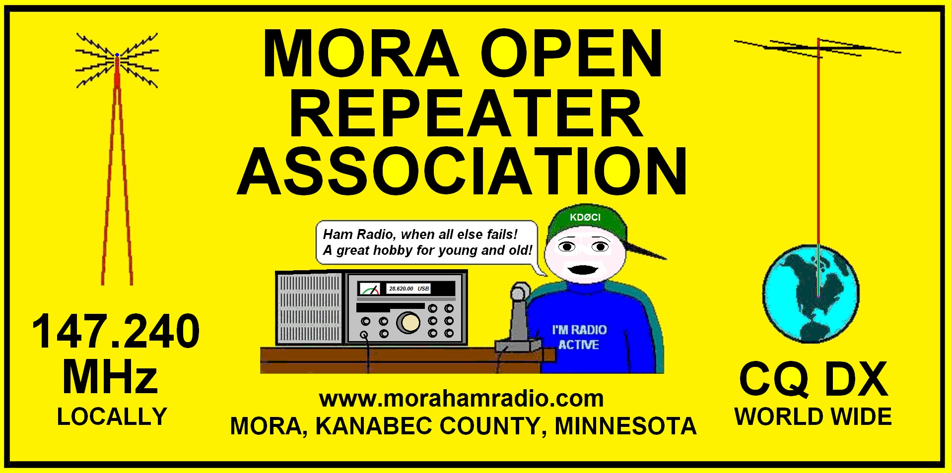 The Mora Open Repeater Association Incorporated [aka: MORA], is a registered 501(c)3 non-profit Amateur Radio organization based in Mora Minnesota.