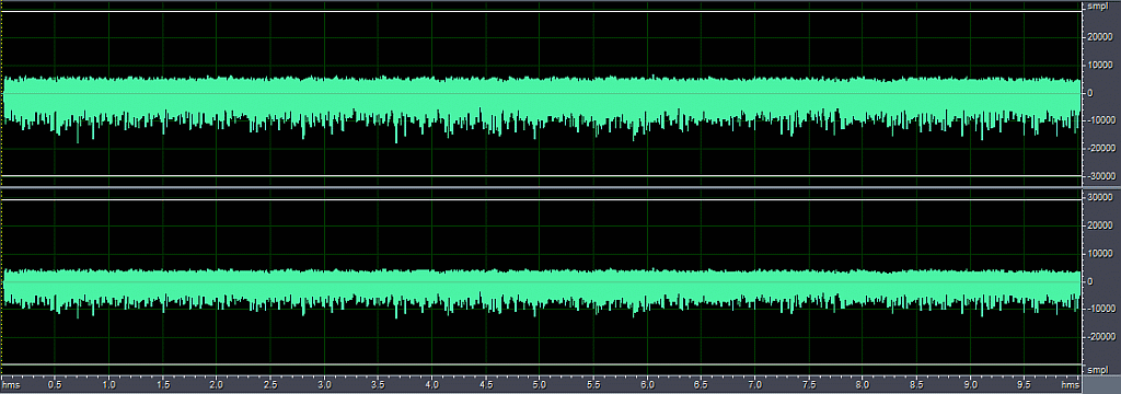 Notes: Everyone knows TV sets make noise. But this was wasn't even on when the recording was made! I unplugged the set, then plugged it back in after a few seconds and the noise went away. However, it returned after the TV was turned on and then back off again.