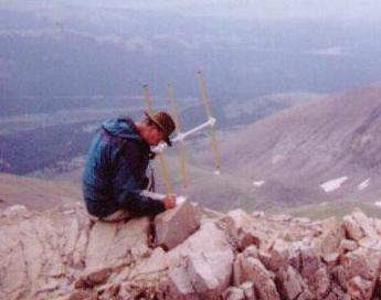 I was really hopeful we would have a band opening as the weather conditions were about the same as the day before when I had heard stations back east from my QTH. So sure enough, I heard a station sign from Chattanooga, Tennessee. So I started calling CQ from the top of Mount Lincoln at 14,286 feet. Then, after tuning around, I worked stations in eastern Tennessee (W2OO), Jackson, Mississippi (W4UDH) and AB4EJ, 50 miles southeast of Birmingham, Alabama. I also worked Dennis, N0SP, who was on Mount Thorodin close to Denver. He and I had talked the day before on 6 meters and he told me that he would look for us on Mount Lincoln. All this time, Jim was working a bunch of stations on 2 meters; a lot of the other peaks were on the air.