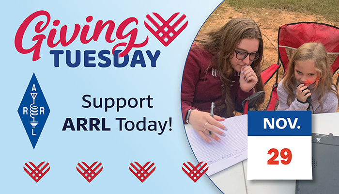 Giving Tuesday is November 29, 2022 – a growing annual movement where individuals and organizations, like ARRL, come together to unleash the power of radical generosity. Many ARRL programs and services are not covered by membership fees alone. Your contributions have a tremendous impact on ARRL’s ability to promote and protect amateur radio and better serve its members. You can donate to ARRL now at www.arrl.org/give.