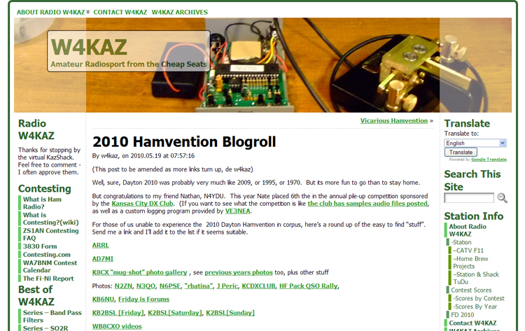 To see what you and I missed, Keith Zeringue, W4KAZ, compiled a comprehensive list of Web pages where you can view photos, videos and blog posts related to the 2010 edition of the Hamvention. Visit Keith’s 2010 Hamvention Blogroll to virtually visit the big show in Dayton. And if you are aware of anything absent from Keith’s list, let him know and he will add it if it is appropriate.