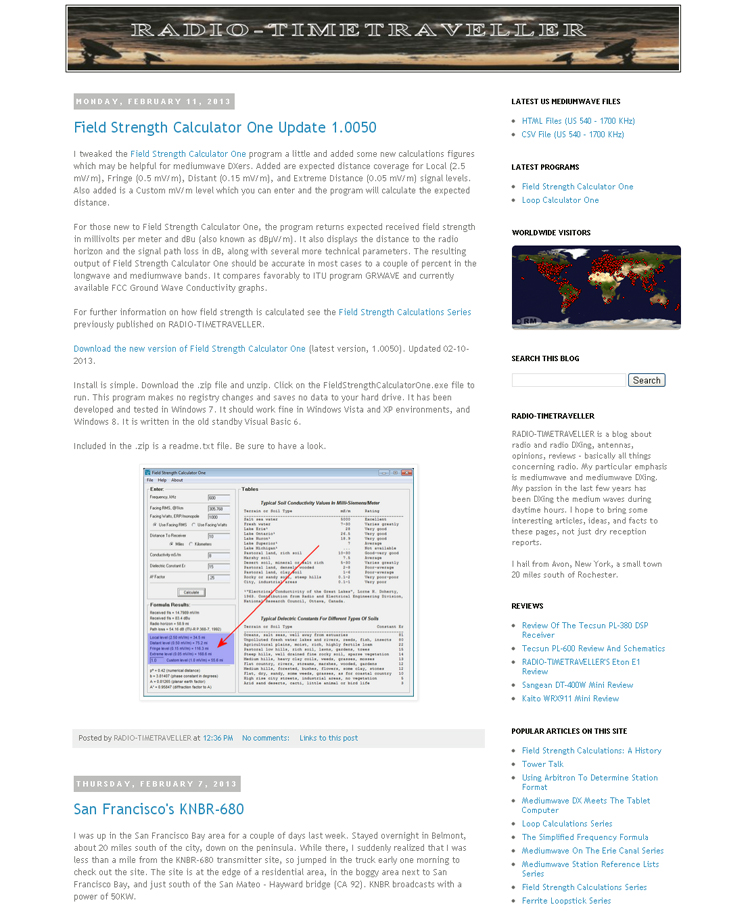 Almost two years ago, I briefly mentioned a cool blog devoted to chasing medium-wave DX: RADIO TIME-TRAVELLER, blogged by William Scott, WE7W. Scott writes that his blog is “about radio and radio DXing, antennas, opinions, reviews -- basically all things concerning radio. My particular emphasis is mediumwave and mediumwave DXing. My passion in the last few years has been DXing the medium waves during daytime hours. I hope to bring some interesting articles, ideas, and facts to these pages, not just dry reception reports.”