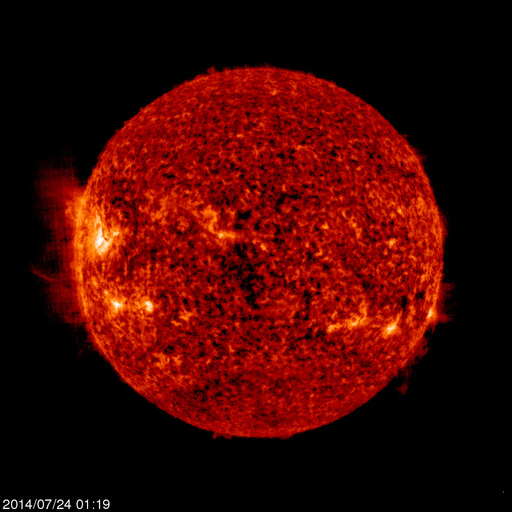On July 18 two new sunspot regions emerged, but the sunspot number was only 26. Two days later, on Sunday, July 20, the sunspot number was just 17, and another new sunspot group emerged. On Tuesday, July 22, two new sunspot regions appeared with a sunspot number of 40, and the next day, July 23, the sunspot number was 55 and another new one emerged.