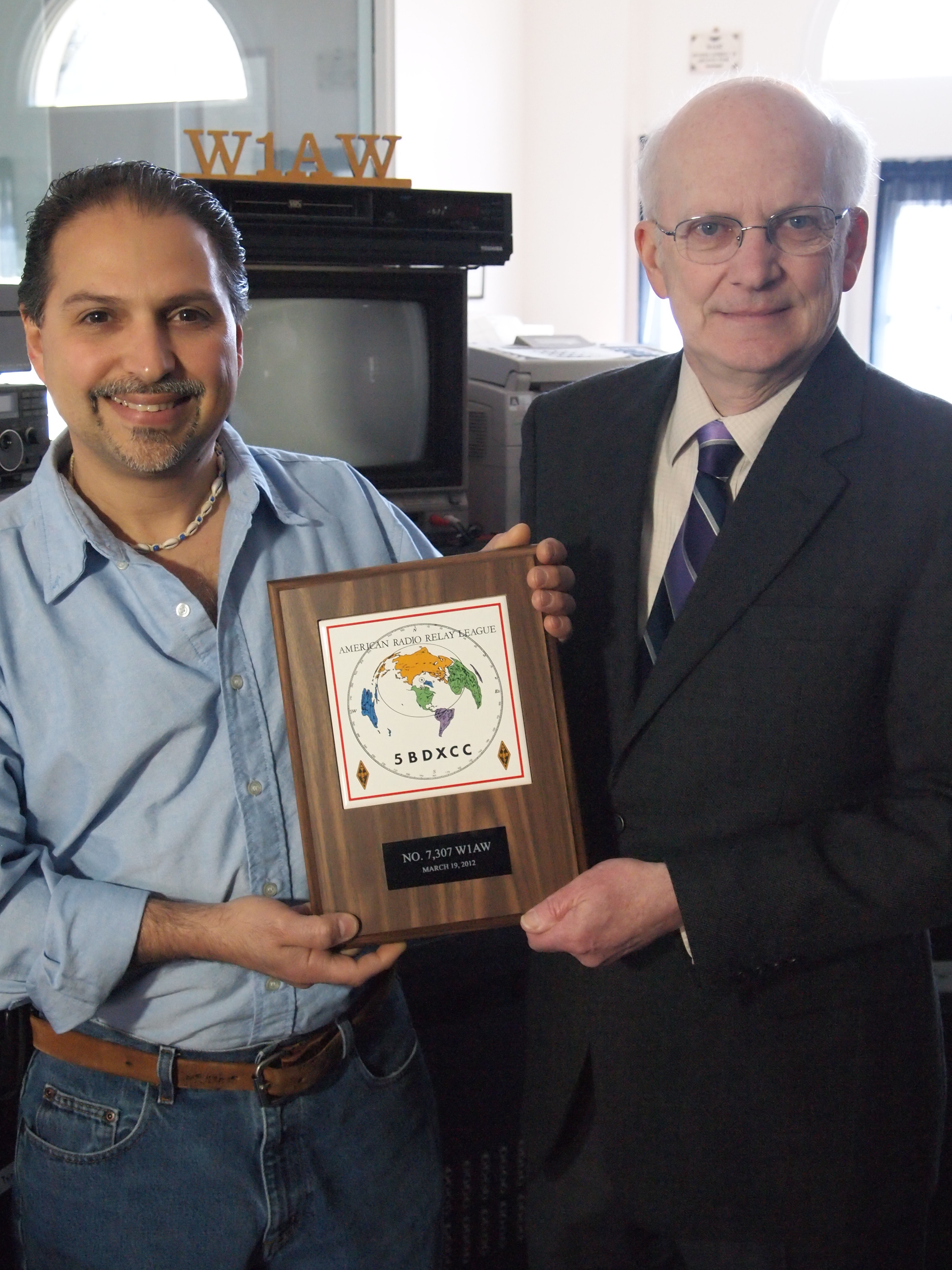 Nearly four decades after the introduction of the Five Band DXCC Award (5BDXCC), W1AW, the Hiram Percy Maxim Station has achieved this milestone. “As with most stations, we found that 80 meters was our stumbling block,” W1AW Station Manager Joe Carcia, NJ1Q, explained. “One by one, we picked off the needed entities, and W1AW now holds 5BDXCC #7307. W1AW’s 5BDXCC plaque will hang in a place of honor at the station.”
