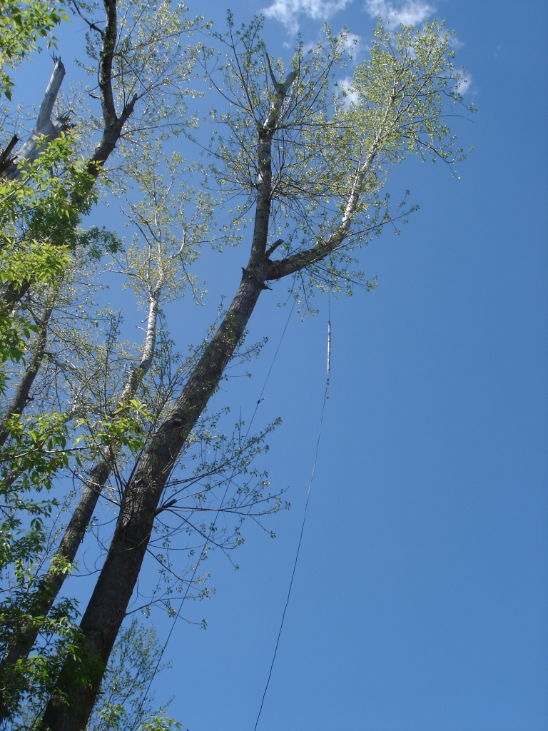 Finally, Harold used his homebrew potato launcher to install the outside antenna (see Figure 2) along with an assist from Howard Flint, KC2EZJ, who drilled a hole through the wall — nothing fancy there.